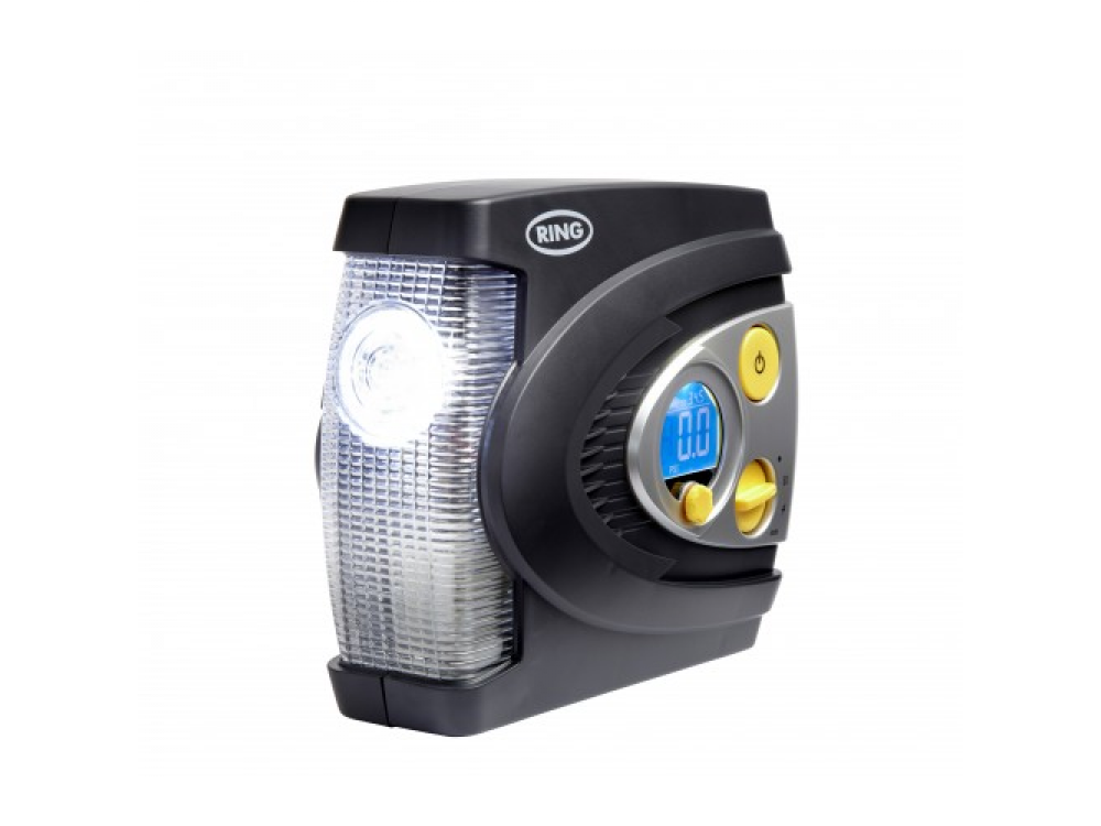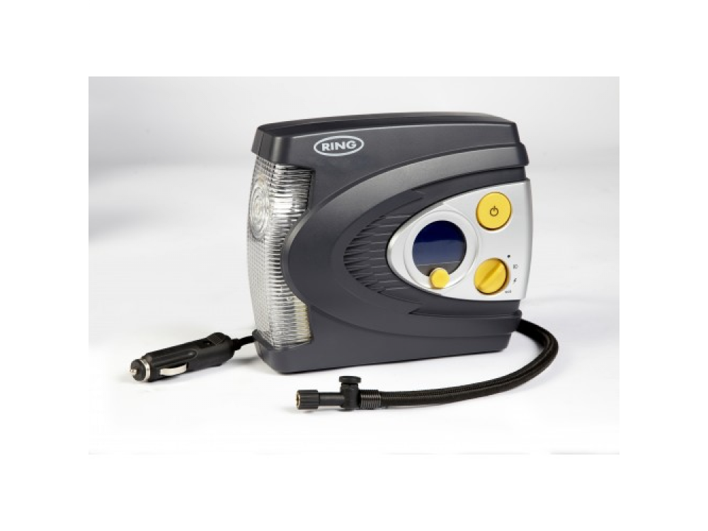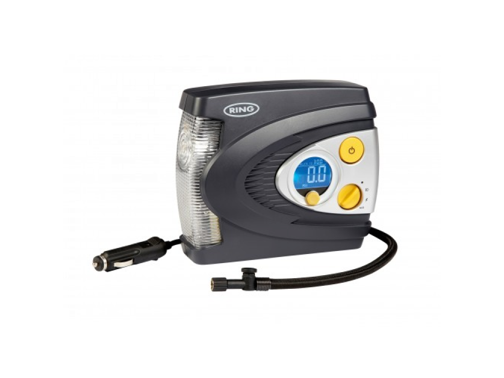 Воздушный компрессор Ring RAC635 со светодиодной подсветкой - небольшой мощный компрессор, облегчающий уход за шинами. Настройка проста, просто поверните поворотную ручку до необходимого давления, затем нажмите старт. RAC635 будет накачиваться до тех пор, пока не будет достигнуто выбранное давление, а затем автоматически остановится. Цифровой экран с подсветкой четко показывает процесс работы, давление отображается в кПа, фунтах на квадратный дюйм или бар. Встроенный светодиодный свет облегчает работу ночью и делает его более безопасным, и его можно установить в режим SOS с красным сигналом, чтобы привлечь внимание или предупредить других автомобилистов.